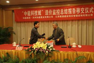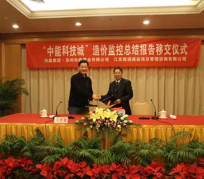 2011年1月14日,我公司與蘇州協(xié)鑫置業(yè)有限公司在南京西康賓館開(kāi)展“中能科技城”造價(jià)監控總結報告移交儀式,標志著(zhù)“中能科技城”項目管理圓滿(mǎn)完成。